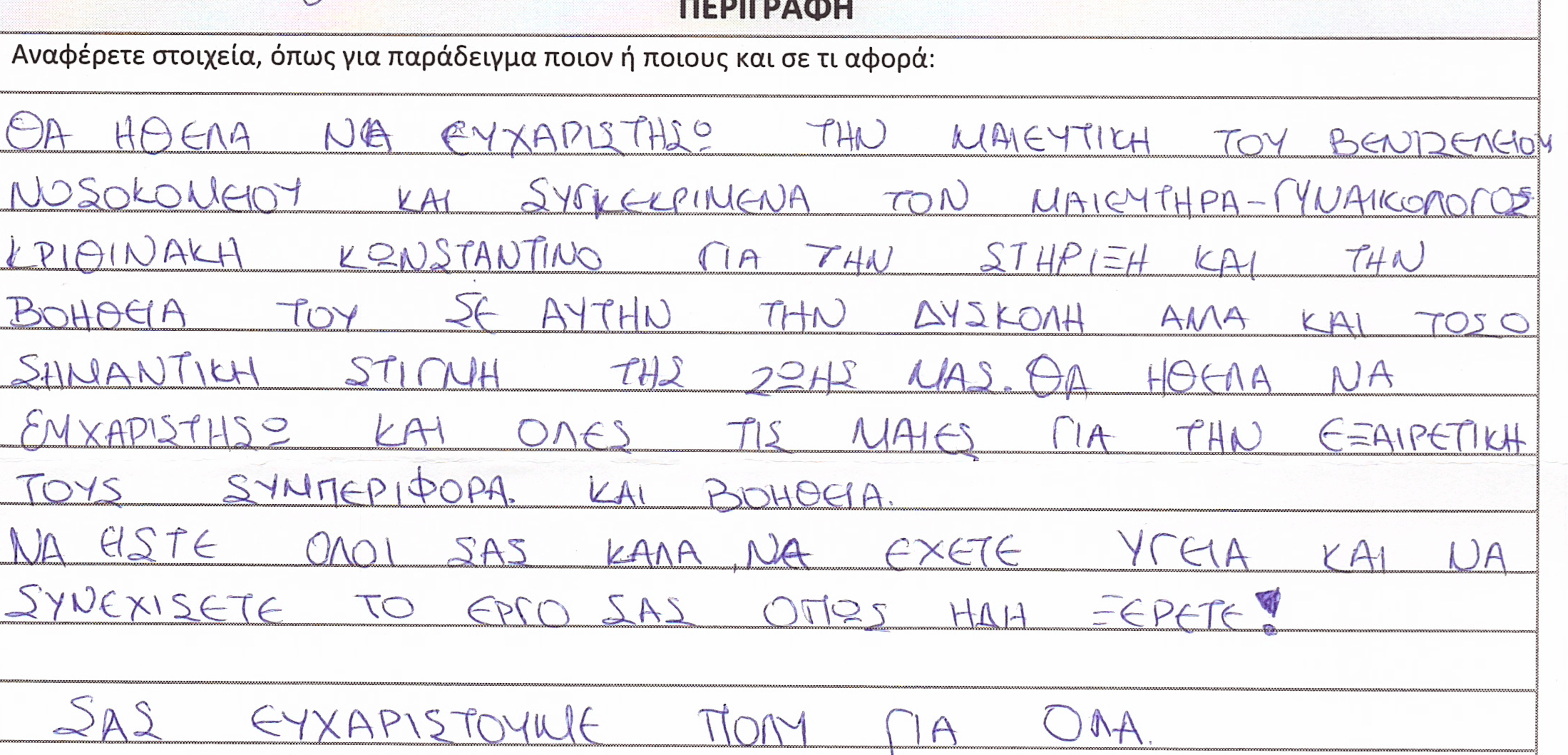 ΕΥΧΑΡΙΣΤΗΡΙΟ ΓΙΑ ΤΗ ΜΑΙΕΥΤΙΚΗ ΚΛΙΝΙΚΗ , ΙΑΤΡΟ κ. ΚΡΙΘΙΝΑΚΗ, ΚΑΙ ΟΛΕΣ ΤΙΣ ΜΑΙΕΣ