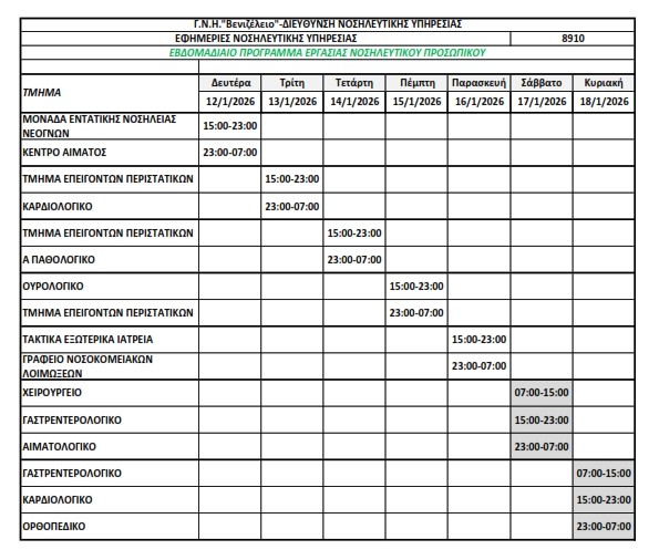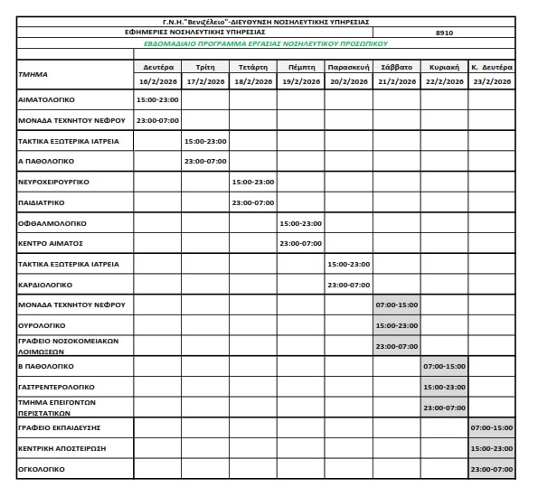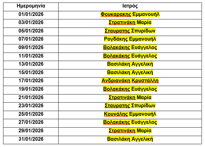Εντός του νοσοκομείου μπορείτε να δείτε τις εφημερίες στον σύνδεσμο: LINK